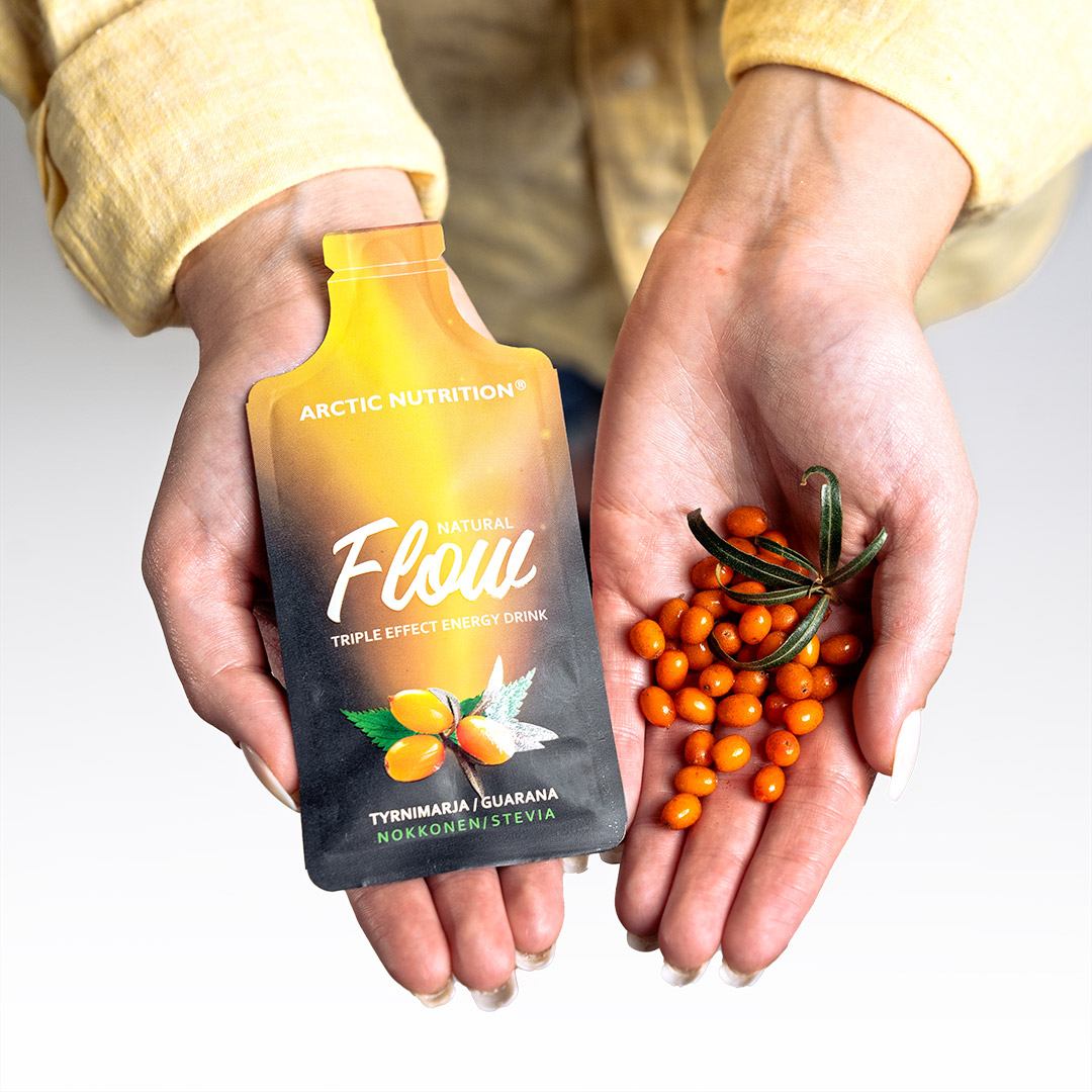 Flow on innovatiivinen kokonaisuus, jonka raaka-aineet ovat täysin luontaisia. Uudenlaisen energiajuoman kolmivaikutteinen teho perustuu raaka-aineiden yhteisvaikutukseen. Juomissa makuina tyrni, puolukka, mustikka-mustaherukka. Lisäksi mukana nokkonen, guarana ja makeutettu stevialla.